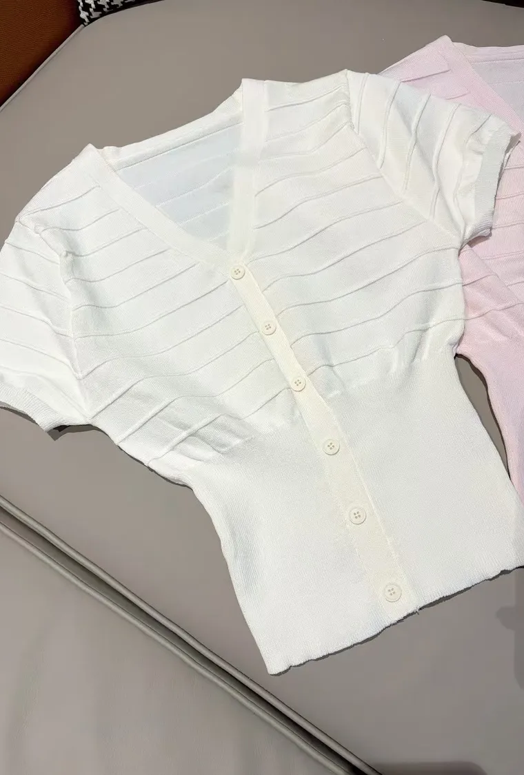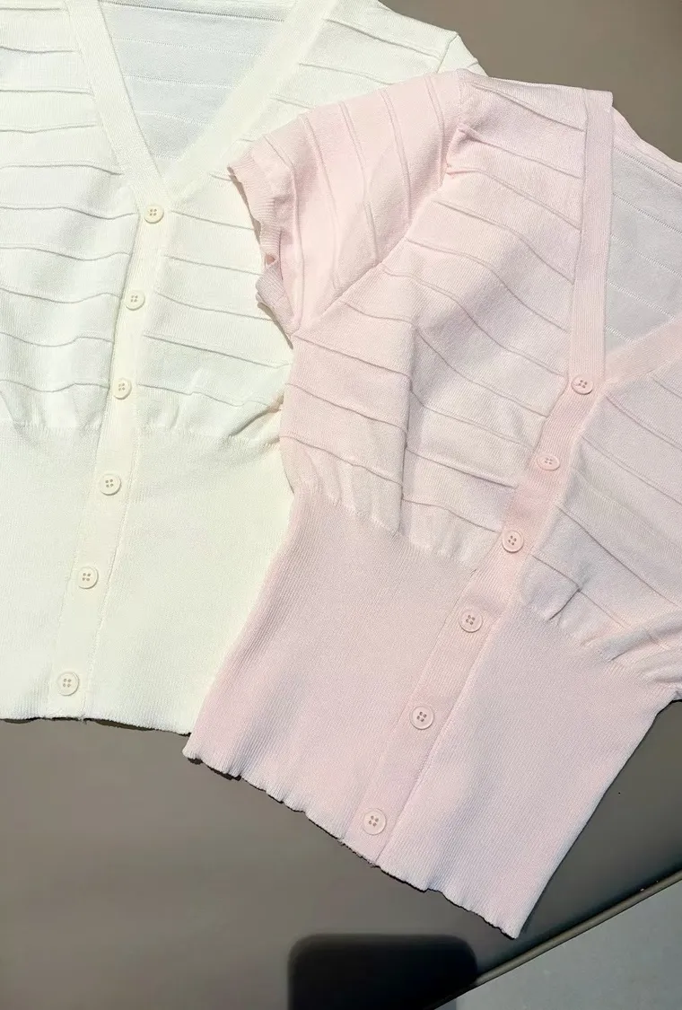 直條織紋設計修飾曲線,V領與排扣造型讓妳上身立體又顯胸型。短版剪裁剛好落在腰間,搭配高腰褲就是腿長一百。