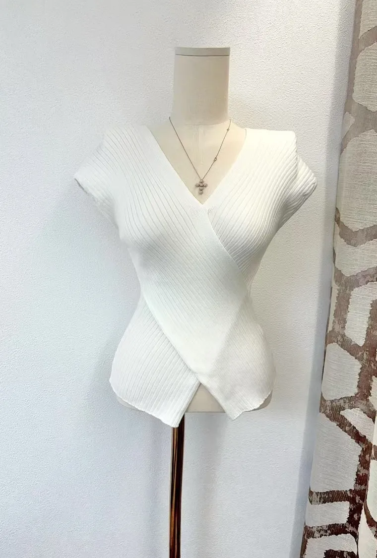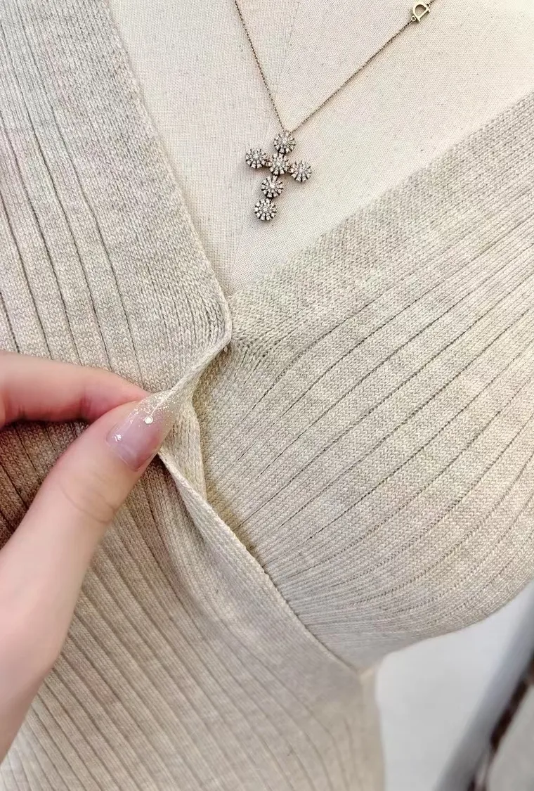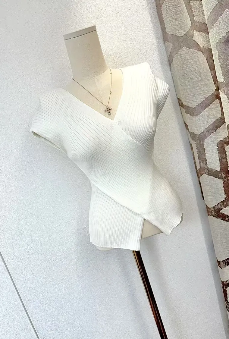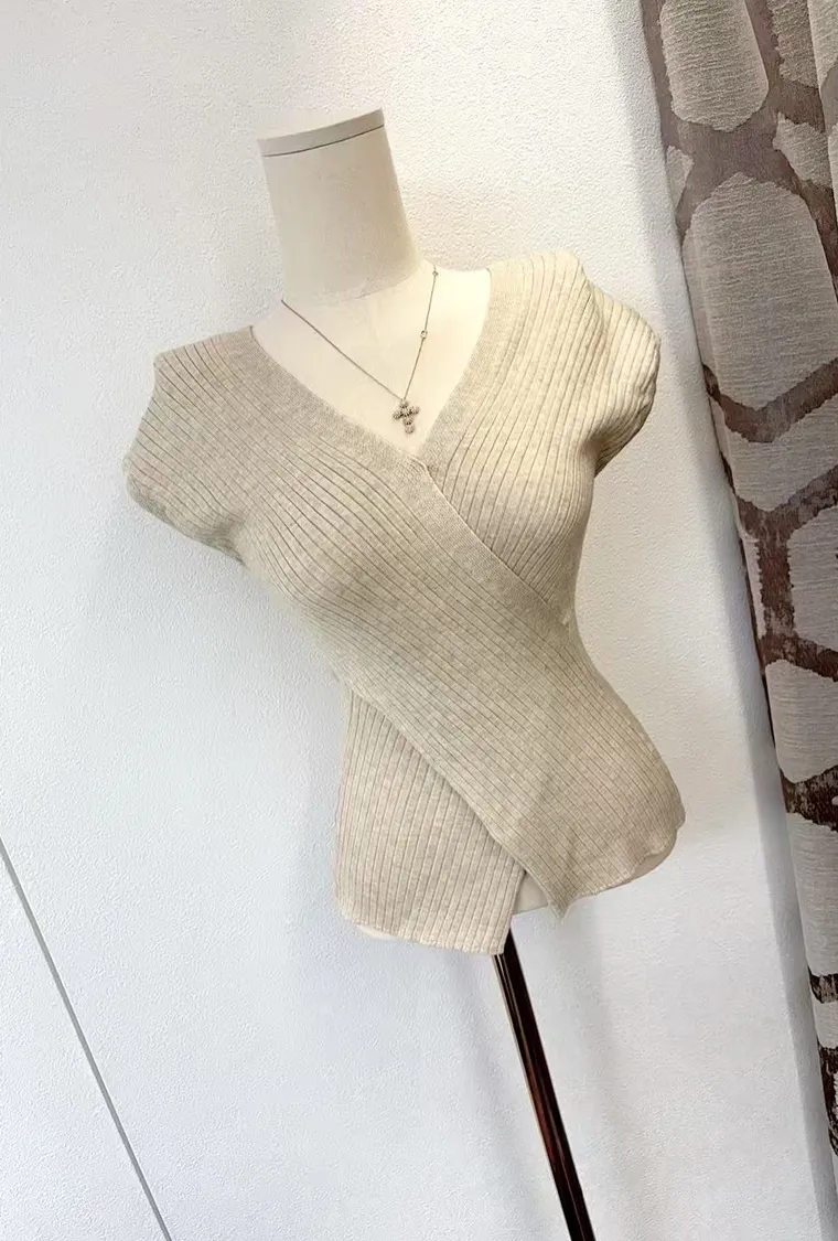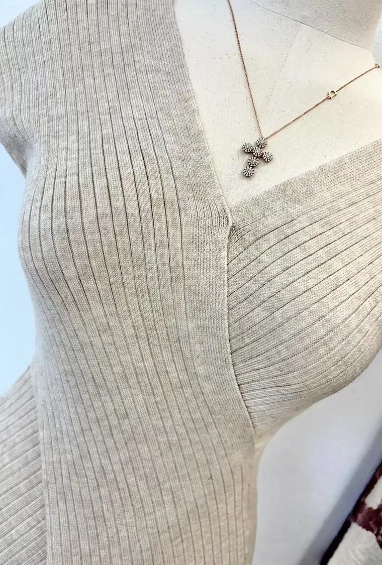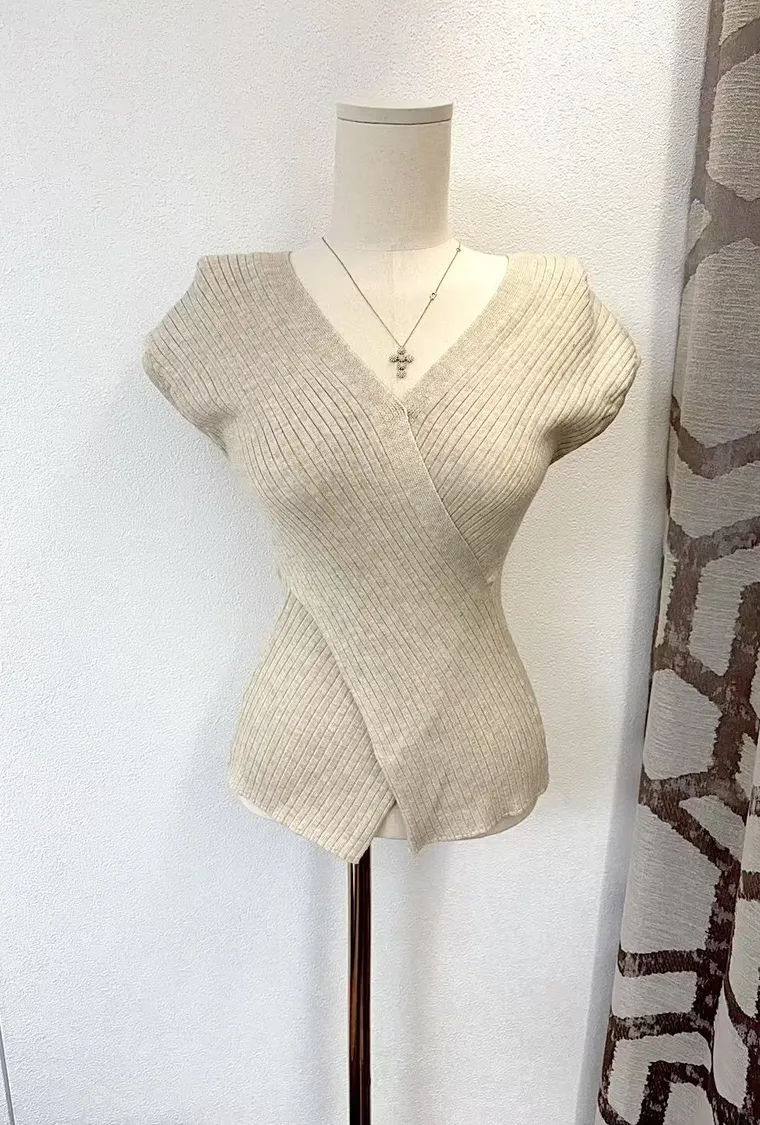 交叉包覆式剪裁讓身形線條自然集中、立體挺胸,柔軟針織布料服貼不緊繃,深V領展現優雅鎖骨與胸型,完全是性感與氣質並存的代表!
