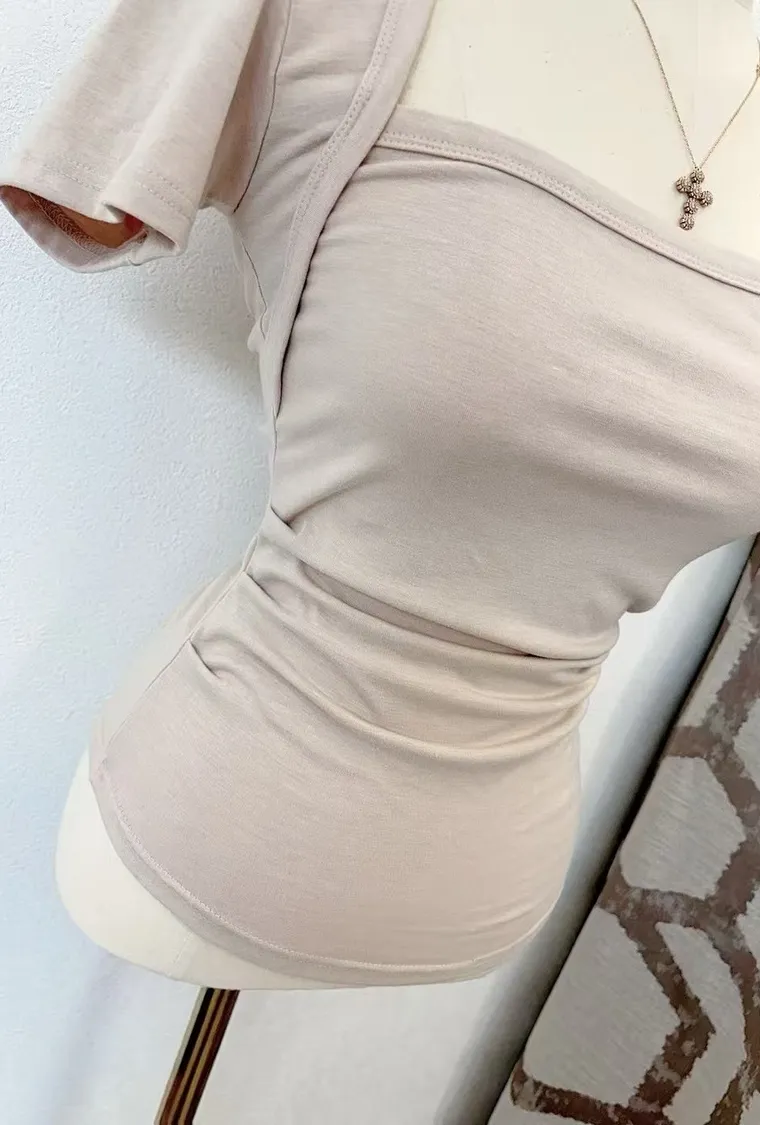 細緻抓皺設計讓腰部自然收緊,視覺上更顯曲線。柔軟彈性布料貼合又不緊繃,一件就能撐起整個穿搭的性感份量。